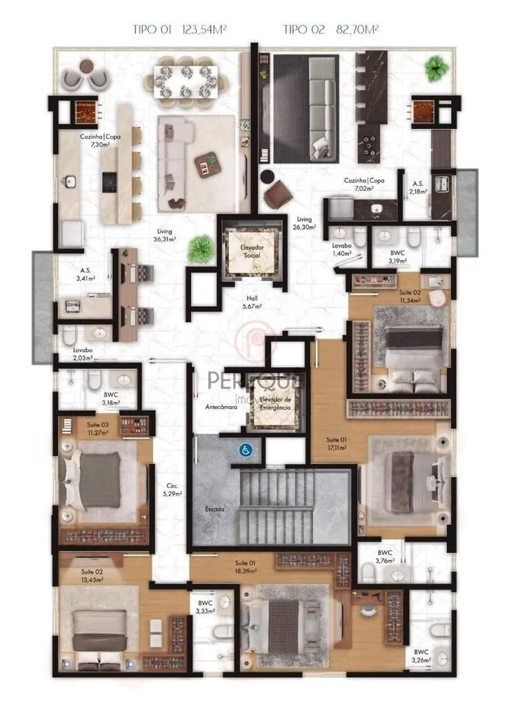 02 suítes: 82m² privativos