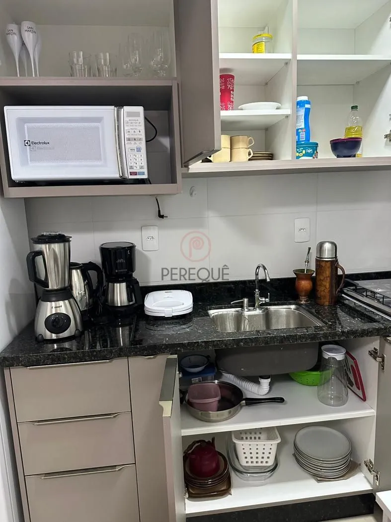 Apartamento fica mobiliado como nas fotos: 2 ares condicionados, móveis sob medida, banheiros completos, máquina de lavar e geladeira.